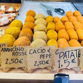 Il faut goûter aux délicieux suppli ( boules de riz à la sauce tomate frites avec de la mozzarella au centre. Ça c’est le traditionnel, suppli romain, mais on en trouve différentes sortes. Aussi, un gelato par jour en été, c’est presqu’un “must”😉. Mais Enrico nous dit que le meilleur gelato est celui qui ne deoborde pas des casseaux (qu ‘on voit souvent et qui est très attirant..) mais celui qui est plutôt dans des petites caisses avec des couvercles ( il faut ajouter des agents de conservation pour que le gelato ne fonde pas quand il est exposé 😉). la pizza al taglio - qu ‘on trouve pratiquement partout dans les bars- café est aussi de rigueur. Elisa, la fille d’Enrico, nous aussi recommande les pangoccioli - une sorte de brioche sucrée avec des pépites au chocolat. ( c’est la version traditionnelle, mais il en existe plusieurs sortes 😉). Elle dit que c’est un arrêt très fréquent pour les jeunes après leurs soirées 😉. ( un peu comme la poutine d ‘ Ashton à Québec ?🤷♀️)