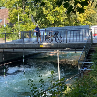 En sortant d'Augsburg - qui est une assez grande ville- nous sommes passés à Friedberg. Mais ce n'est pas le Friedberg où Elvis a fait son service militaire (on a cherché sa statue 🫢). Mais contents d'être passés par là. On était surpris de voir la statut de saint Jacob dans l'église (voir photo) et le village était joli. Aussi, ça nous a permis de passer par le centre d'entraînement de l'équipe nationale de Kayak et où a eu lieu cette épreuve lors de jeux olympiques de 1972. Pas mal cool!